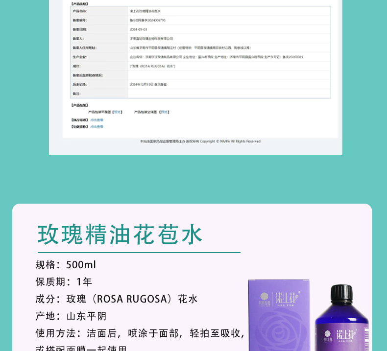 唐潮花開(kāi) 平陰玫瑰大瓶精油花苞水500ml爽膚補水